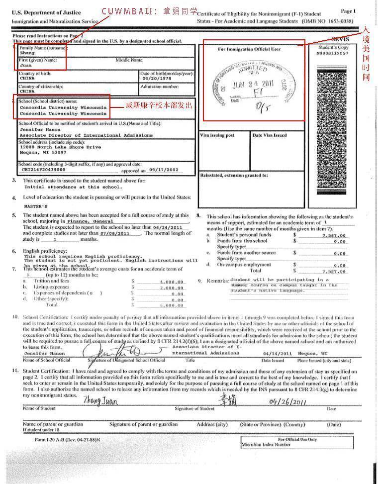 學習期間參訪美國協和大學威斯康辛分校校本部將頒發1-20 |